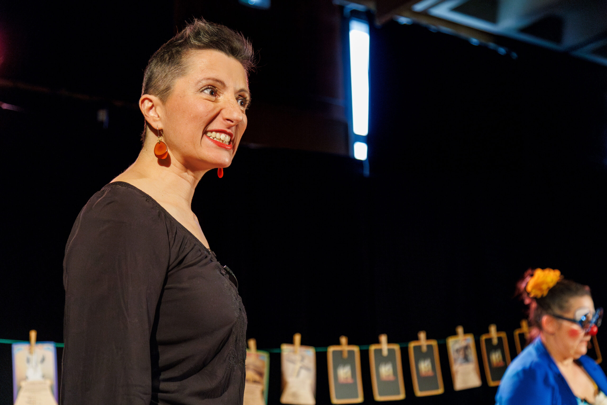 Autant de réflexions que le clown apporte, autant d’interrogations qui bousculent la conteuse et qui l’obligent à interroger non seulement les contes mais aussi son positionnement.
