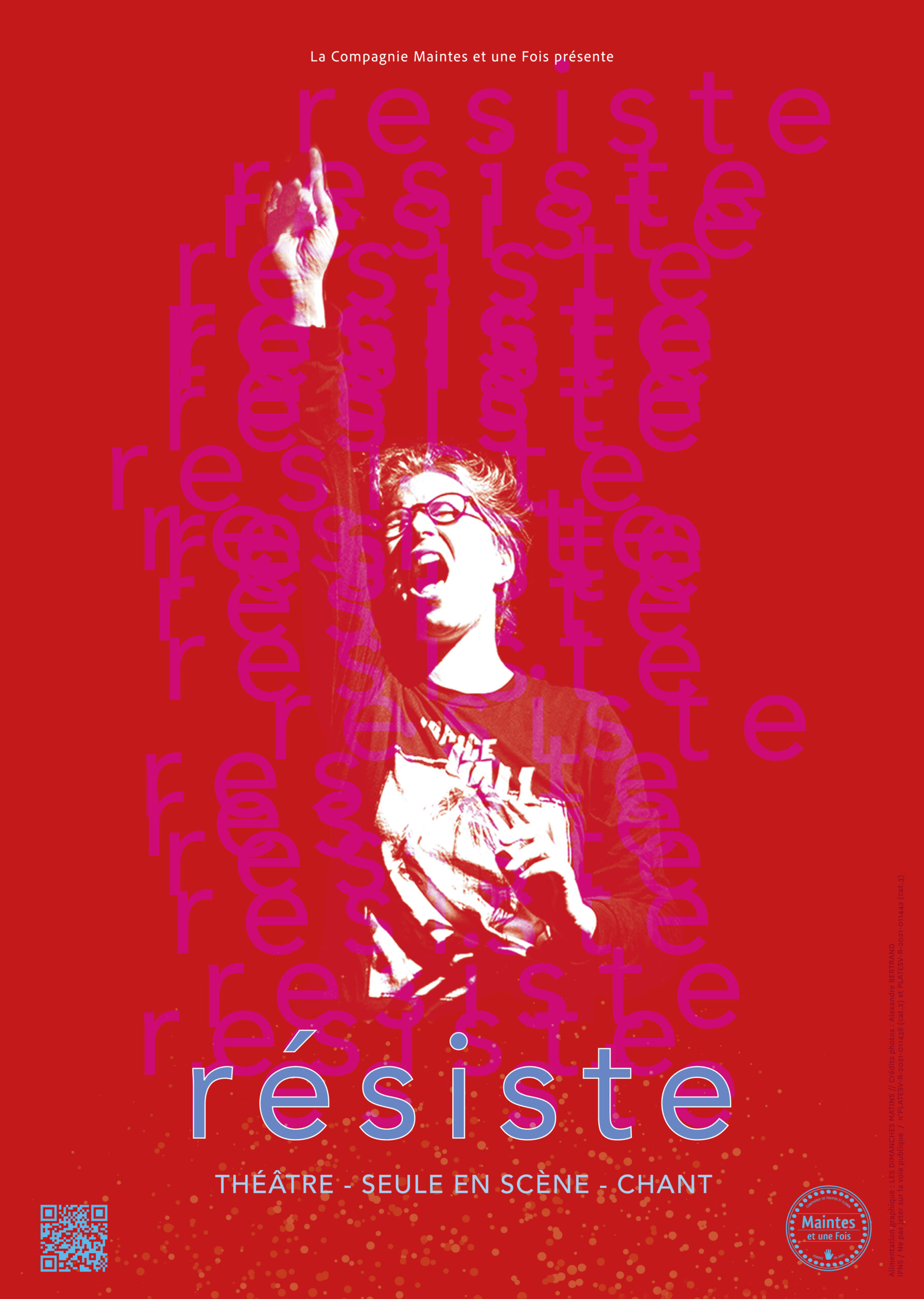 Dans Résiste, on attend une star qui doit faire son show ! Elle se fait attendre, tellement attendre… que c’est Karen sa régisseuse de plateau qui devra jouer à sa place. Face au public, Karen commence par l’imiter. Se prenant au jeu , elle construit petit à petit son propre spectacle.et raconte 3 destins de femmes, Karen, Paméla et France.